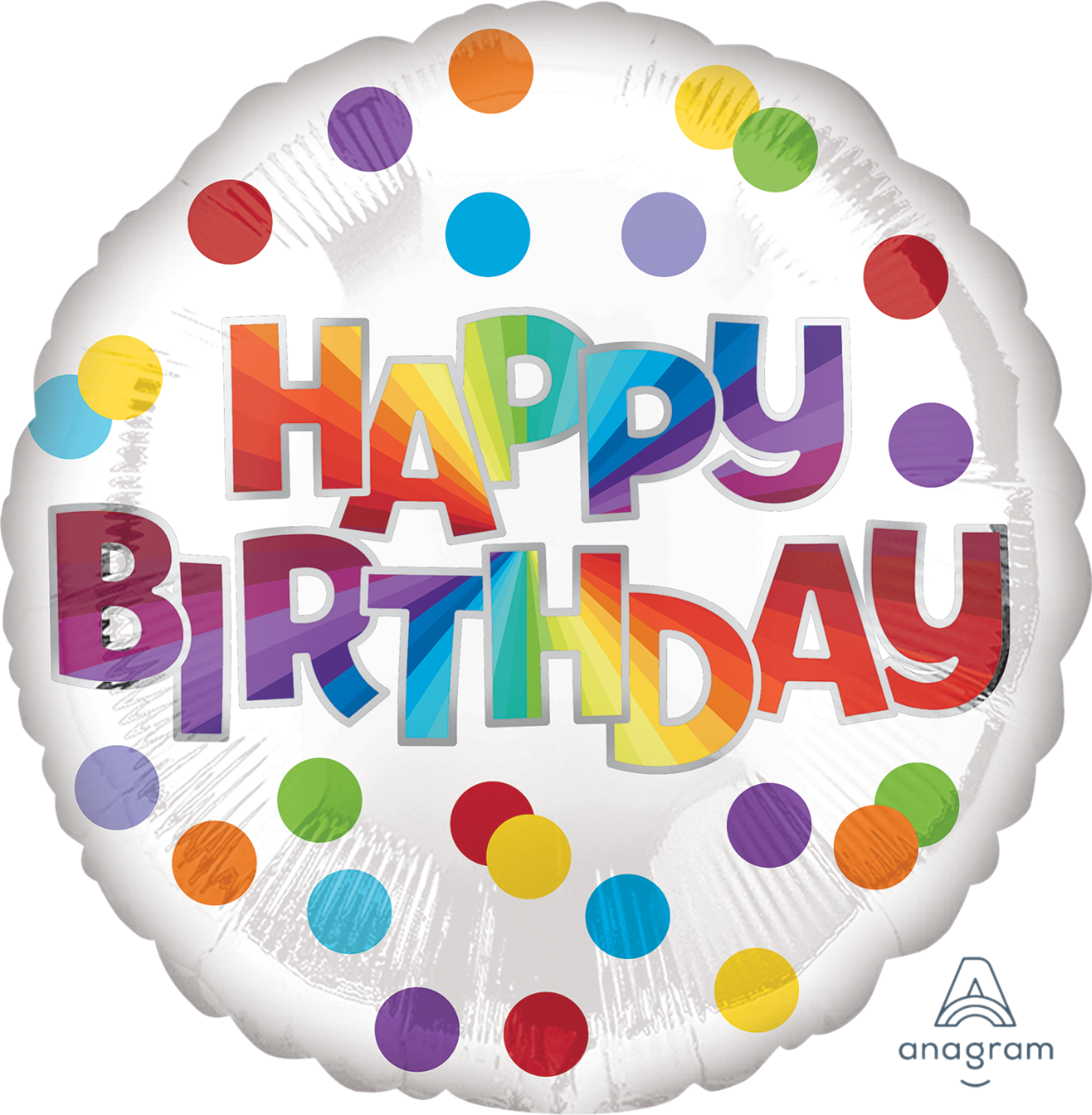 Happy Birthday Balloon 18" Foil Mylar Balloon Rainbow Polkadots Helium Filled