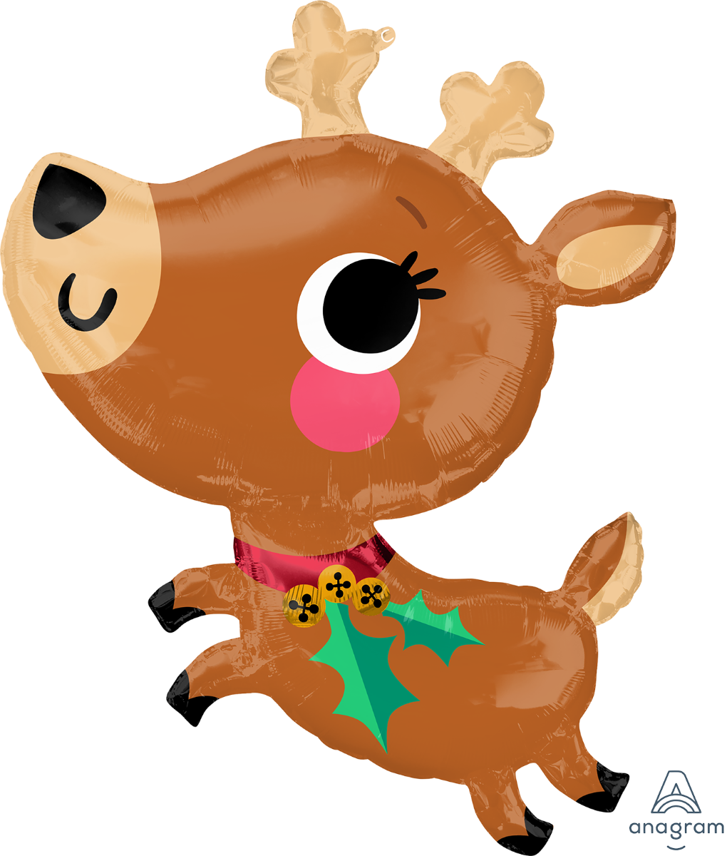 Celebrate the holidays with this large 30" reindeer foil mylar balloon.